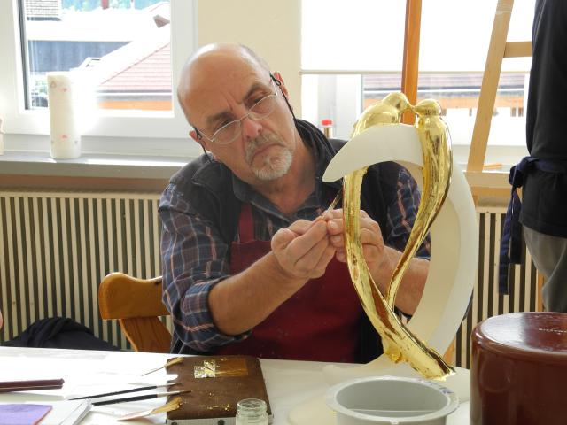 In this course, you can design your own sculptures or objects in color, gold or silver plating and experiment with colors and surfaces. There are no restrictions on the workpieces to be designed: abstract objects, any type of sculpture, driftwood, smooth wooden panels and frames - anything is possible! The course instructor will provide expert advice and assistance, e.g. in choosing the right technique, color scheme and final design. The variety of workpieces and ideas brought along creates an inspiring atmosphere from which all participants benefit.Please bring 2 to 3 natural workpieces of medium size to choose from to the course.